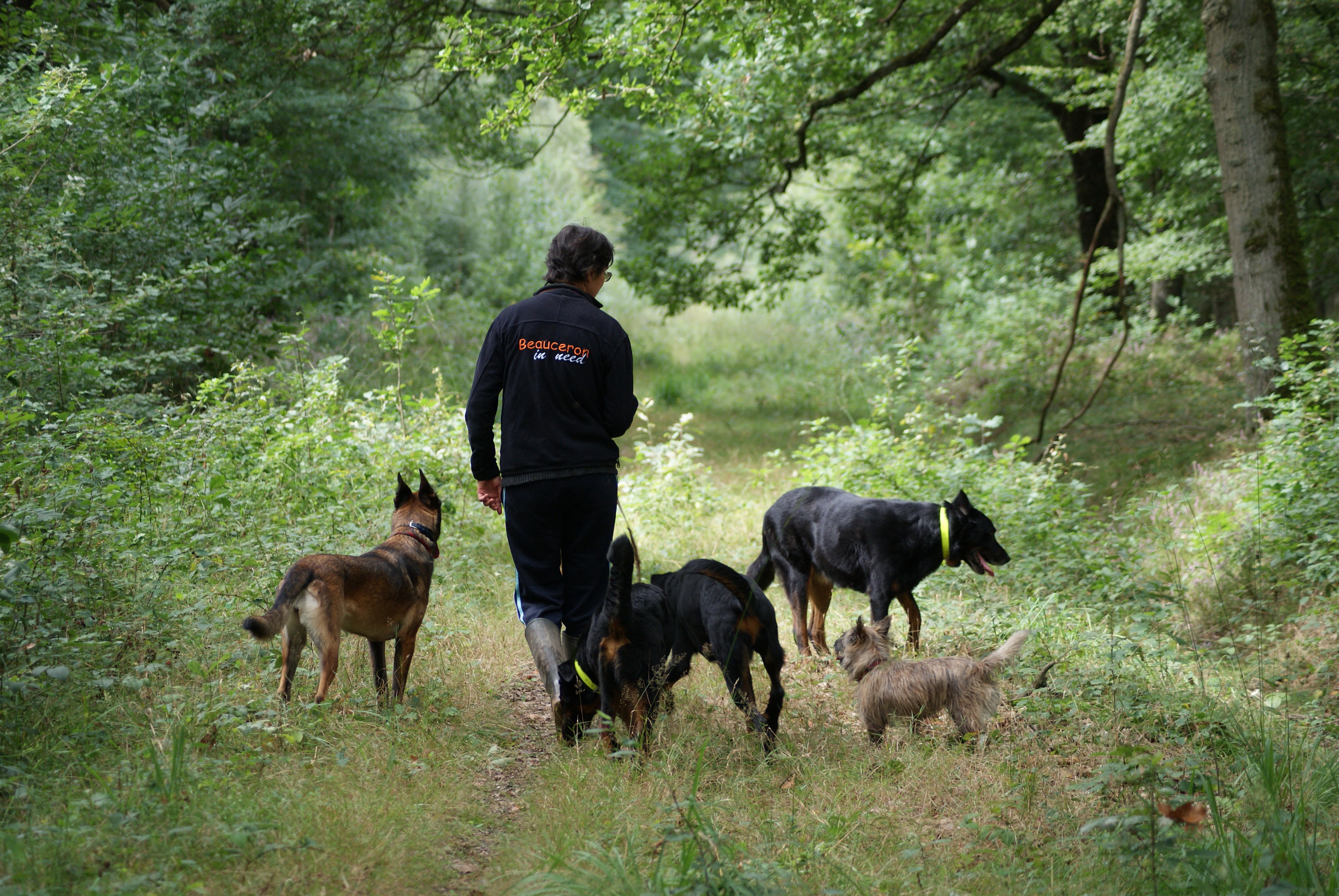 milieu essentiellement rural ou en forêt, balade. Les chiens sont tenus en longe ou en laisse, ou en liberté selon le lieu, la sociabilité, et la réponse au rappel.