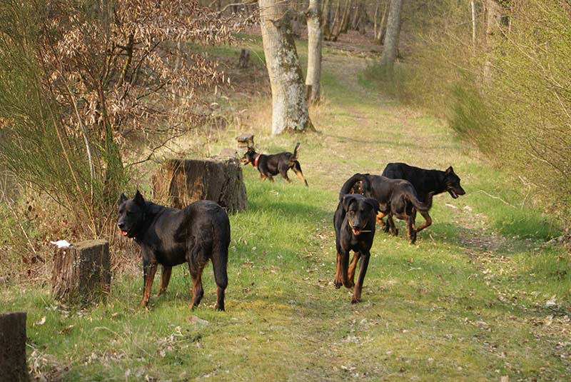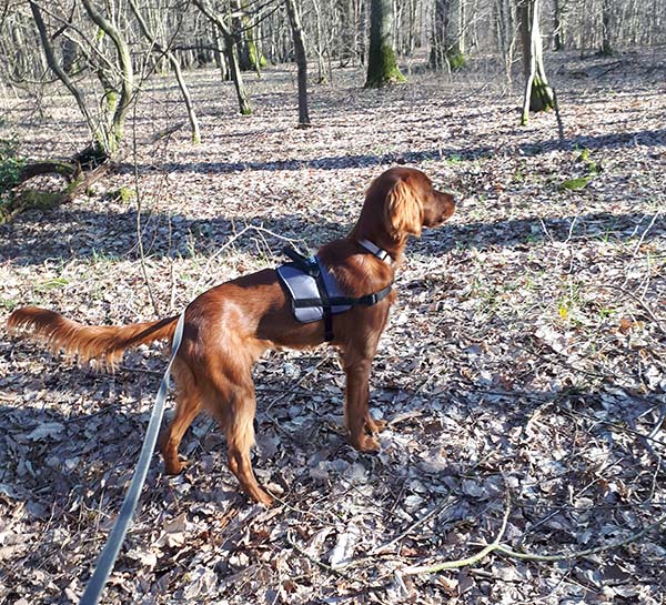 Notre situation particulière en forêt de Rambouillet permet des promenades quotidiennes en longe dans un cadre agréable et paisible, au rythme du chien, de son envie de suivre une piste, de farfouiller dans les fourrés, ou de trotter sur les longues allées forestières.