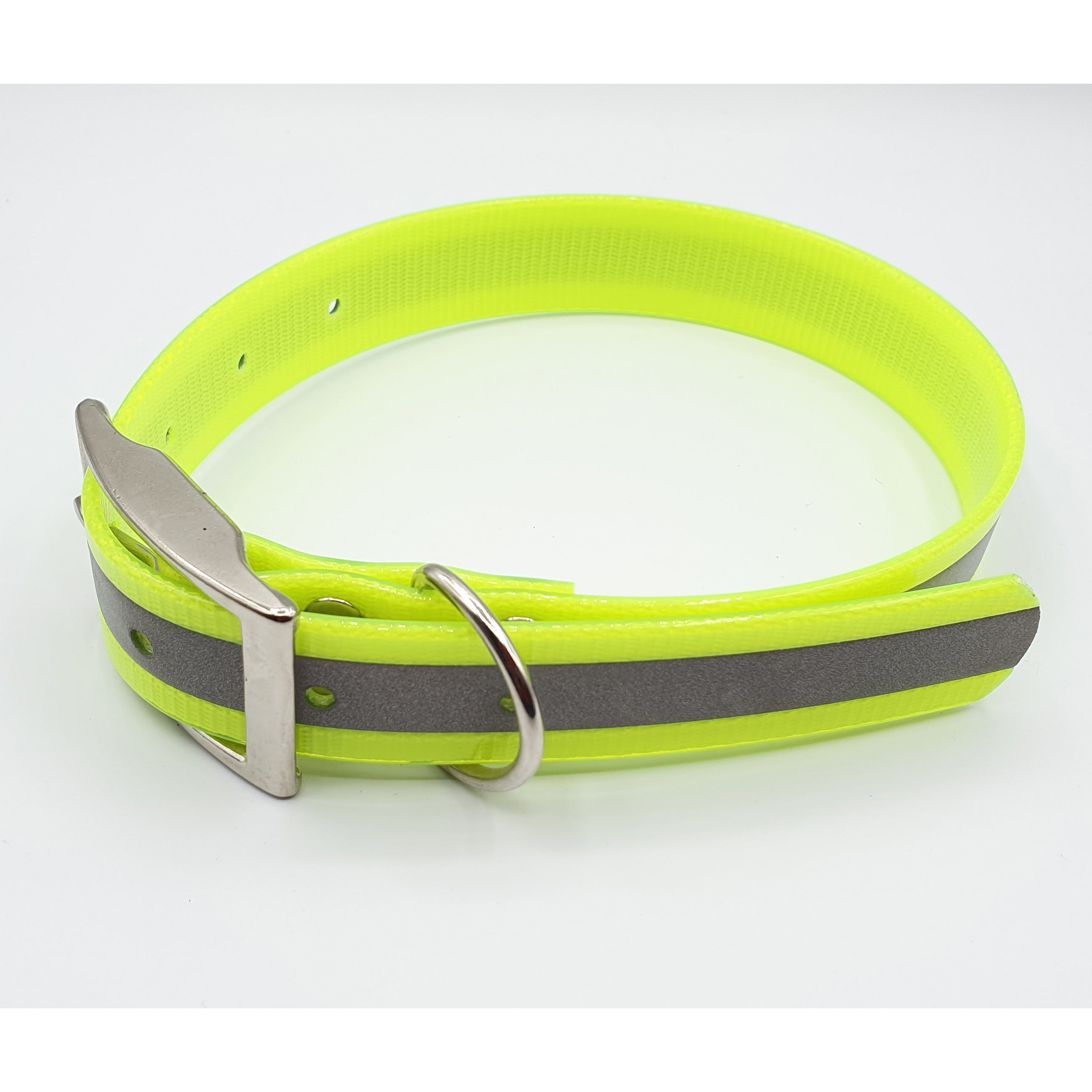 Le Biothane est très résistant, durable et requiert peu ou pas d’entretien. Sa composition le rend bien plus résistant aux UV que les plastiques ou pvc composant les colliers classiques.