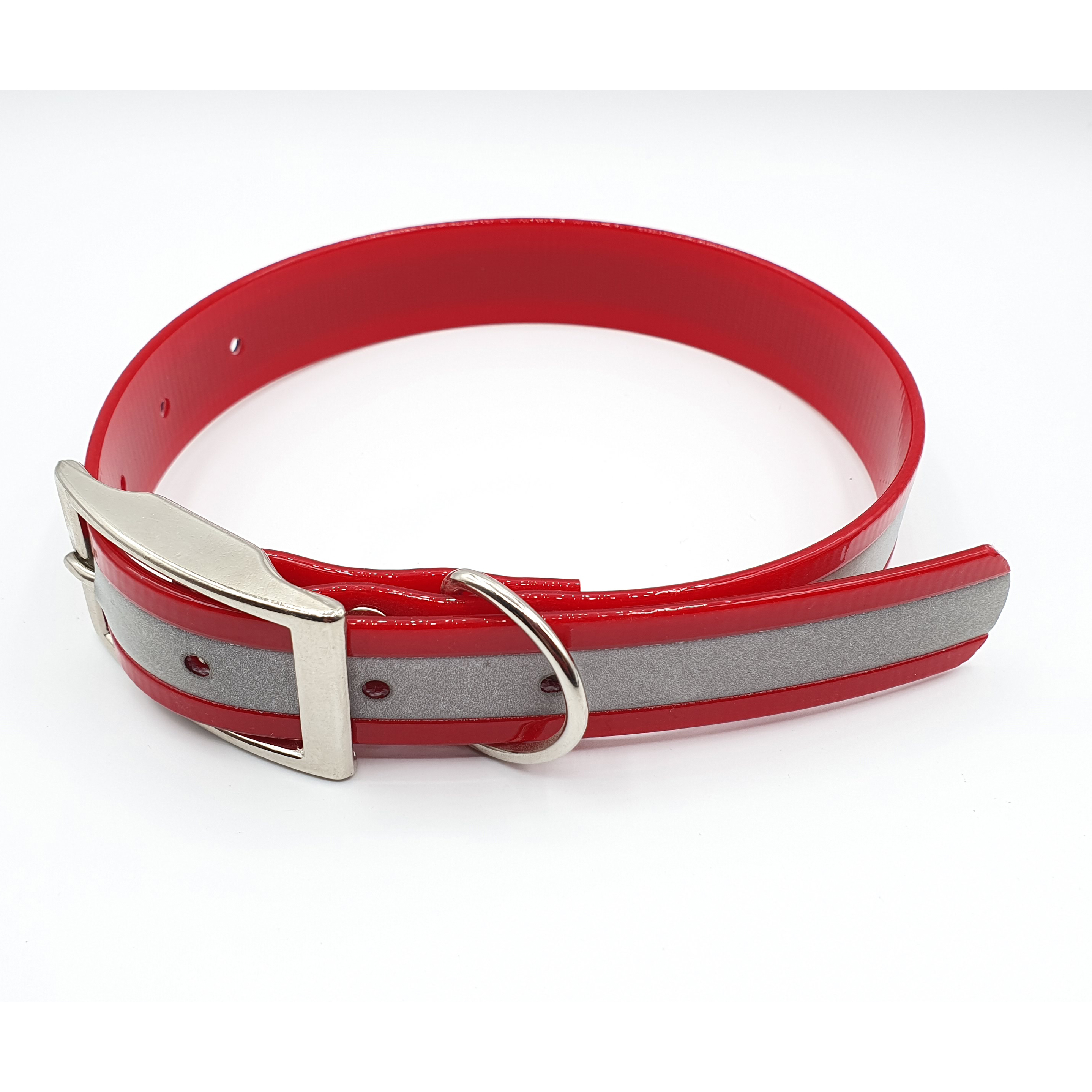 Soucieux de la sécurité de vos chiens, nous avons choisit de vous proposer une large gamme de colliers avec une bande réfléchissante. En effet, quand il y a une source de lumière comme les phares des voitures, cette bande renvoie la lumière la nuit et rend votre chien visible !